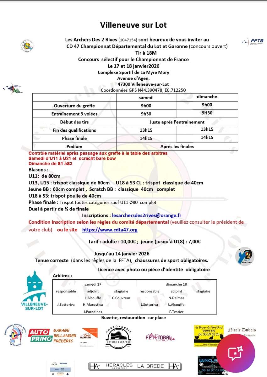 17/01/2026 - CHAMPIONNAT DÉPARTEMENTAL SALLE 2026 - CD47