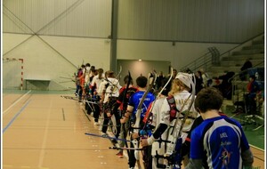 102 archers jeunes et adultes, 06 arbitres, parents, supporters ont répondu à l'appel des Archers des DEUX RIVES; organisateurs du Championnat Départemental Salle 2X18M.